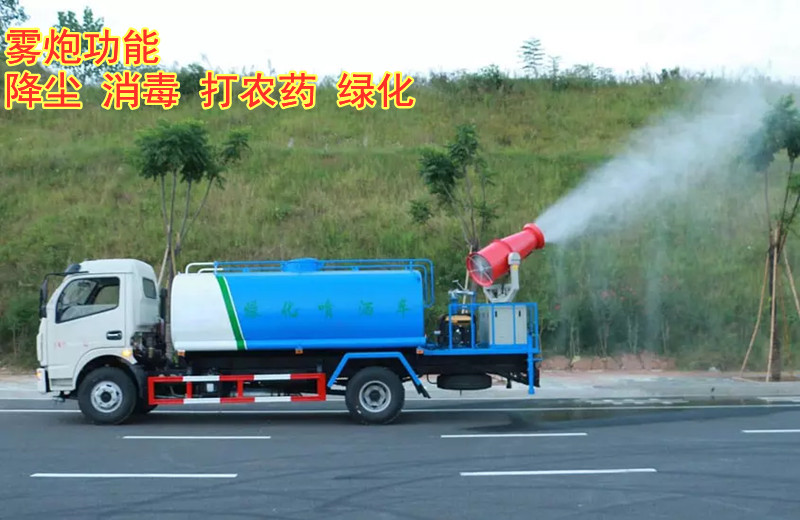 灑水車工作主要由發(fā)動(dòng)機(jī)帶動(dòng)變速箱,變速箱上安裝的取力器帶動(dòng)灑水車水泵產(chǎn)生動(dòng)力,將罐體內(nèi)部的水通過管路噴灑出去,水泵可自吸自排?筛鶕(jù)用戶需求選配抑塵霧炮。